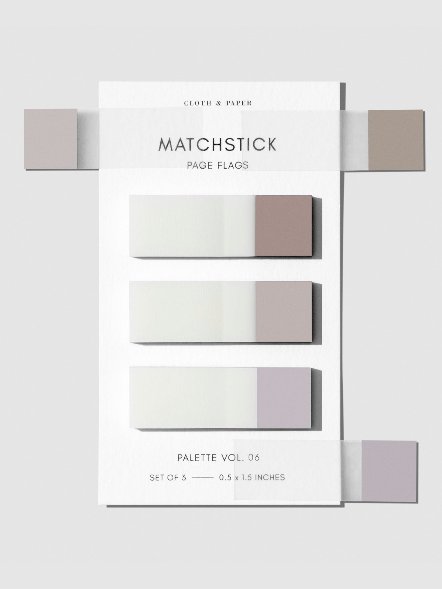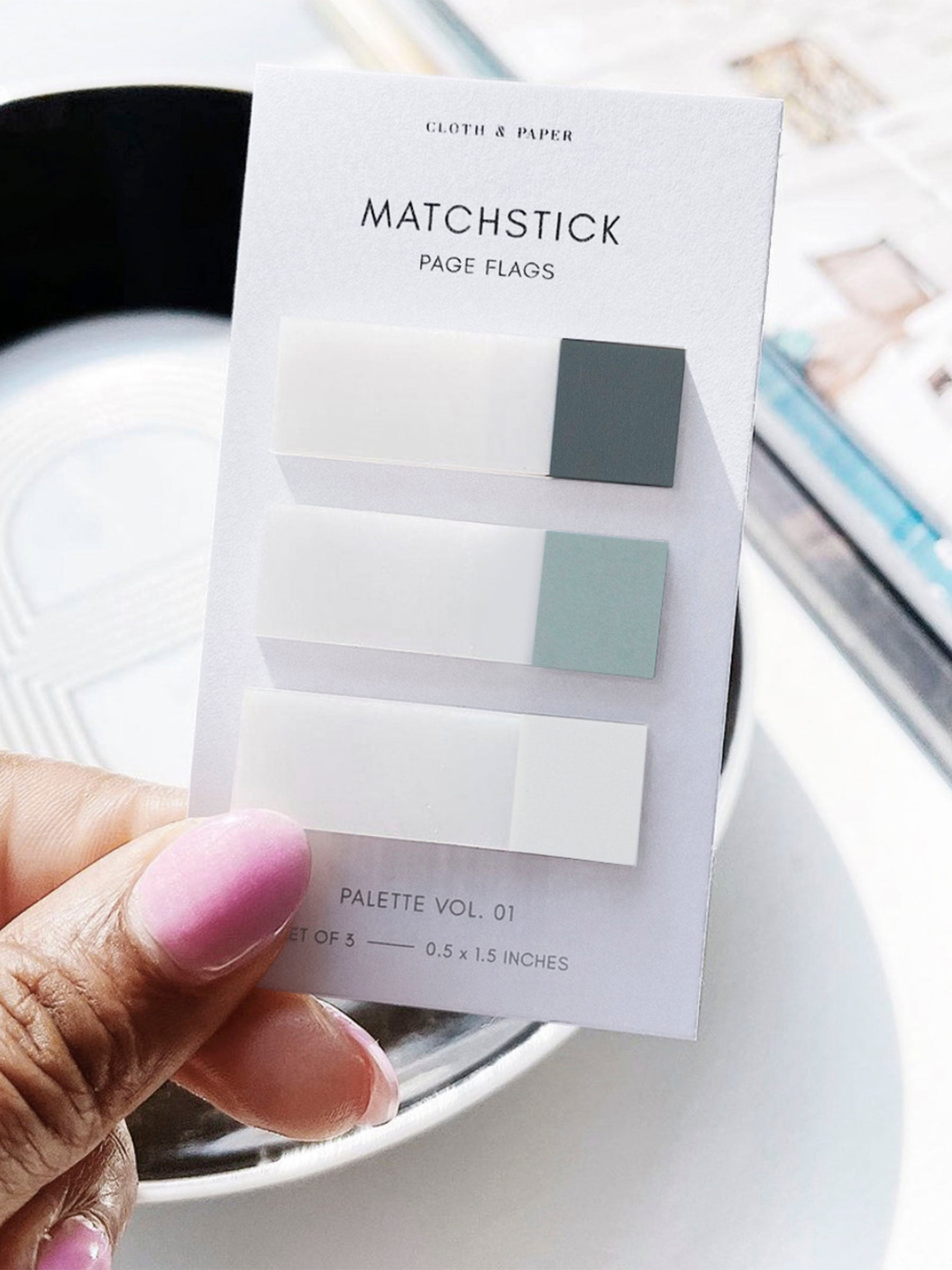 Our Matchstick Page Flag Set includes three coordinating transparent page flags, each featuring a subtle pop of color to accent your most important tasks and plans.